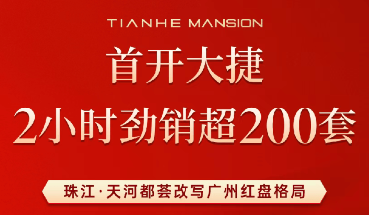 4月26日,广州的珠江·天河都荟首推一期房源,现场超千人抢房,开盘两小时销售超200套,房源去化率接近100%。