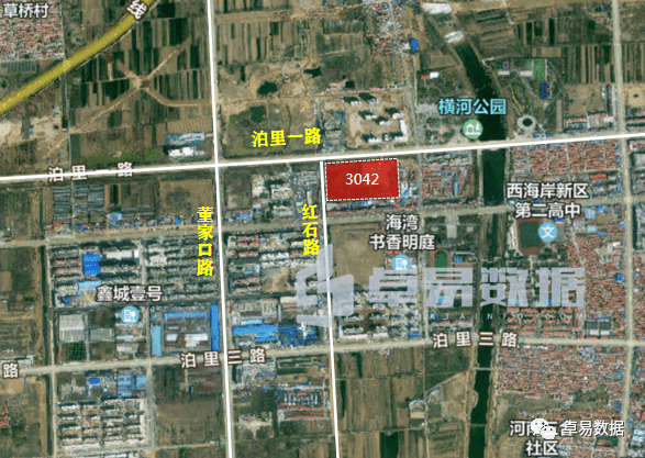 3042号地块位于泊里一路南、红石路东,占地面积42134㎡,总建面75841.2㎡,起拍价1520元/㎡,最高限价1748元/㎡,起拍总价1.15亿。