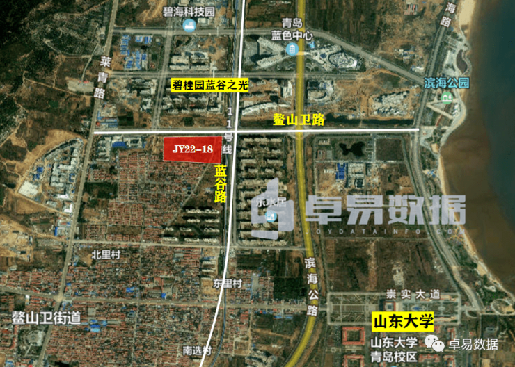 JY22-18位于青岛蓝谷鳌山卫路以南、河海路以东、蓝谷路以西、规划路以北LG0102-07-A地块,占地41590㎡,容积率2.0,总建面83180㎡,其实楼面价1824元/㎡,最高限价2097元/㎡,起拍总价1.52亿。还须缴纳耕地开垦费992.3325万元。