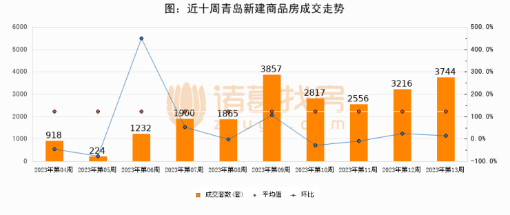 【青岛成交周报】第13周新房成交3744套,二手房1849套,涨价房源1507套