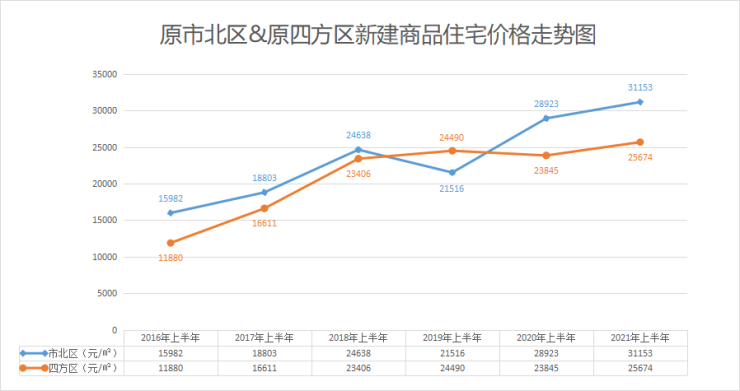 就在卓易数据较新出炉的青岛新建商品住宅成交数据中,老四方在2021年上半年新房成交均价已经达到了25674元/㎡,可谓再创新高。