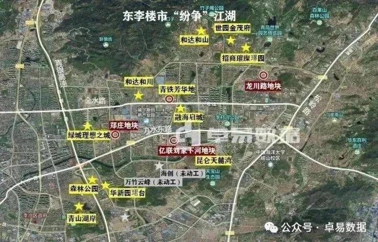 李沧森林公园2017年取地,总地价37.9亿元,楼板价7550元/m²,由金地、越秀、中海、万科、青岛城投5家企业共同开发。