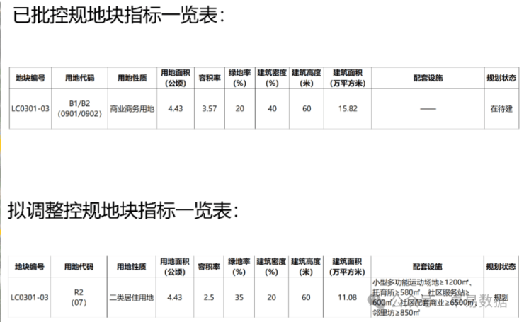 地块占地4.43万m²,调整后容积率由4.43调整为2.5,调整后规划建筑面积11.08万m²。