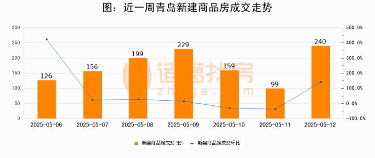 【青岛成交日报】05月12日新房成交240套、二手房293套;