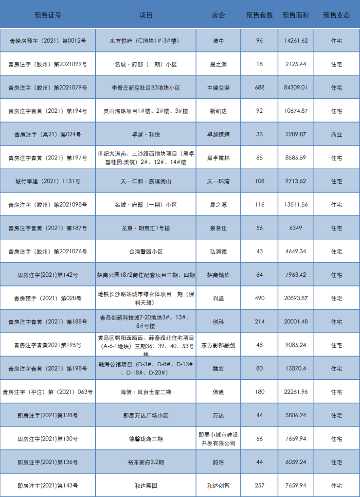排在第四到第十位的分别是保利叁仟栋、即墨旭辉银盛泰星河城、海岸万科城、旭辉银盛泰星韵城、保利时代、禹洲悦府、富美文化商苑。从各区及各项目的成交情况来看,上周新建商品住宅成交以近郊各区项目为主,主城区仅保利时代及富美文化商苑两个项目上榜。