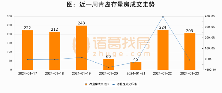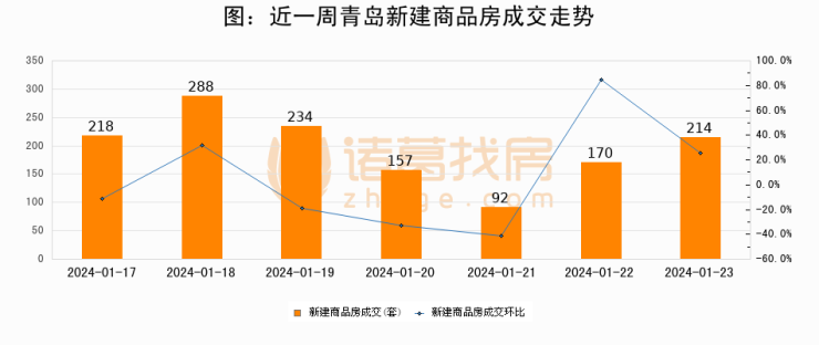 【青岛成交日报】01月23日新房成交214套、二手房205套;涨价房源17套