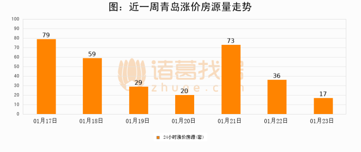根据诸葛找房数据显示,青岛24小时涨价房源量为17套,较01月22日减少19套,环比下降52.8%。与此同时,涨价房源占比小幅回落,对于购房者来说是一个入市窗口期,购房者可抓住时机入市。