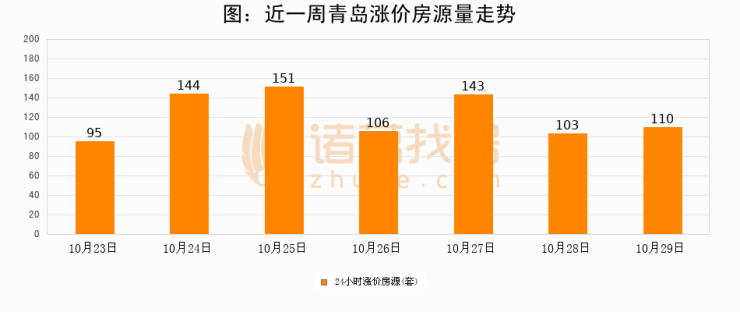 根据诸葛找房数据显示,青岛24小时涨价房源量为110套,较10月28日增加7套,环比上涨6.8%。与此同时,涨价房源占比小幅扩大,业主信心有所提升。
