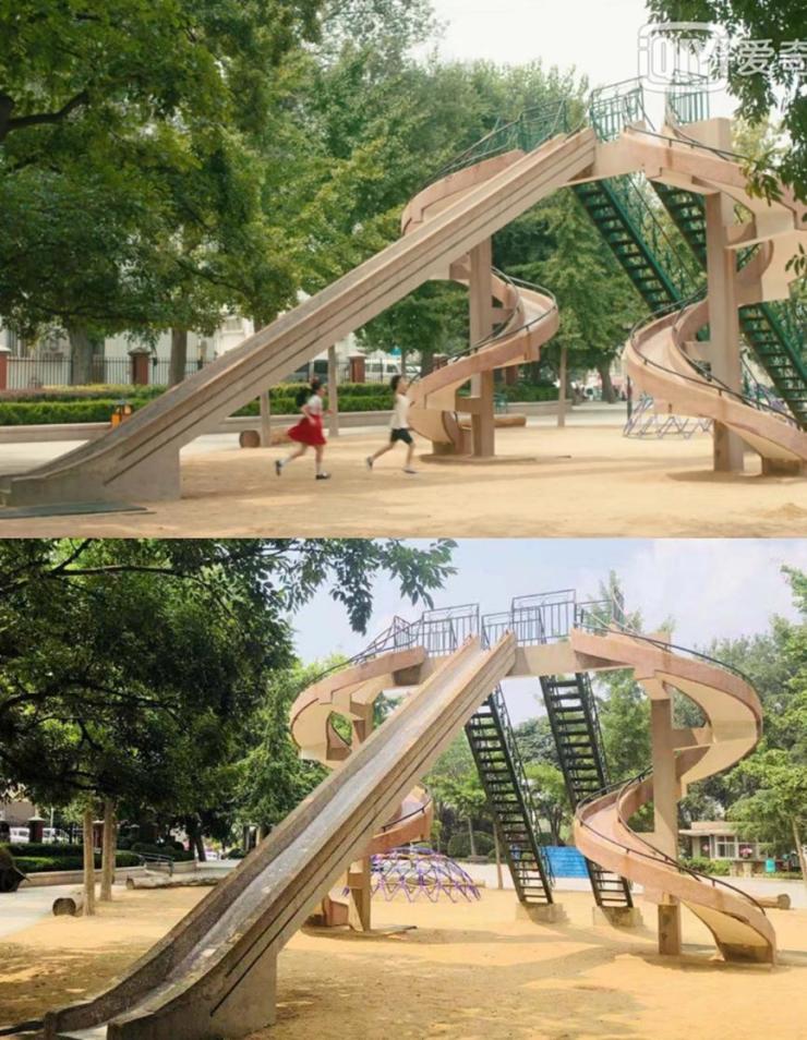 始建于1957年的沧口公园承载了一代又一代老青岛人的记忆,公园内的大滑梯更是聚集了无数人的回忆。沿着楼梯爬上高高的滑梯顶端,再飞速滑下,耳畔的风呼呼吹过,带走男孩们脸上的汗珠,吹动女孩们漂亮的裙摆,这一刻似乎所有的烦恼和忧愁都会被抛之脑后。