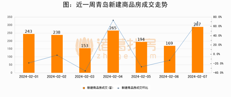 【青岛成交日报】02月07日新房成交287套、二手房79套;涨价房源6套