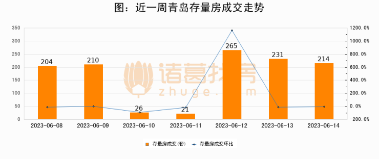 【青岛成交日报】06月14日新房成交302套、二手房214套;涨价房源65套