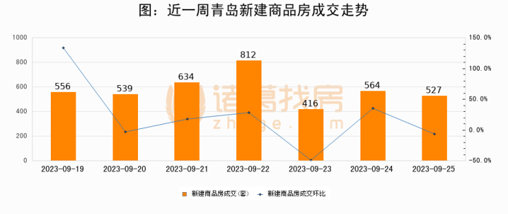 【青岛成交日报】09月25日新房成交527套、二手房267套;涨价房源48套