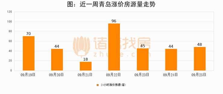 根据诸葛找房数据显示,青岛24小时涨价房源量为48套,较09月24日增加4套,环比上涨9.1%。与此同时,涨价房源占比小幅扩大,业主信心有所提升。