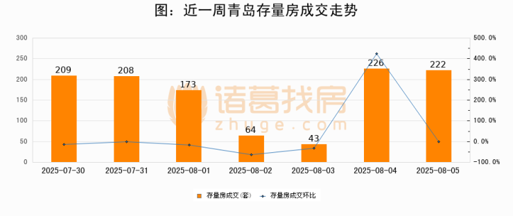 【青岛成交日报】08月05日新房成交103套、二手房222套;