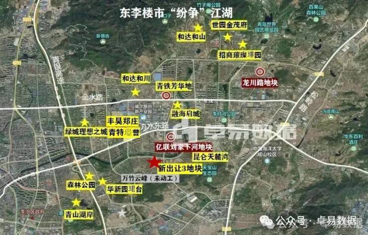 李沧森林公园2017年取地,总地价37.9亿元,楼板价7550元/m²,由金地、越秀、中海、万科、青岛城投5家企业共同开发。
