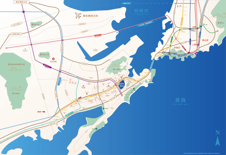 地铁12号线(规划中)北上连接自贸试验区,经红岛高铁站后向城阳延伸。