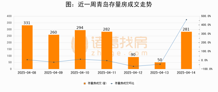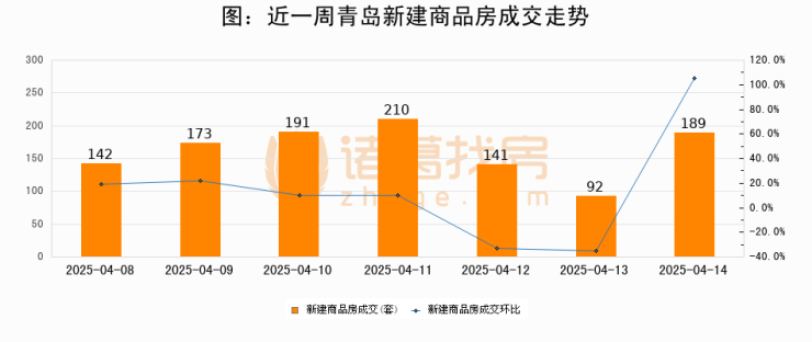 【青岛成交日报】04月14日新房成交189套、二手房281套;