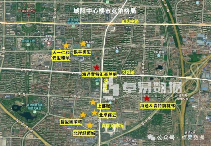 目前城阳中心城区的竞争也十分激烈,北岸绿茵城、青特和海通的汇豪兰庭、银丰御玺、天一仁和云玺雅颂、碧玺园荣耀、上郡赋、海通与青特前桃林地块等。