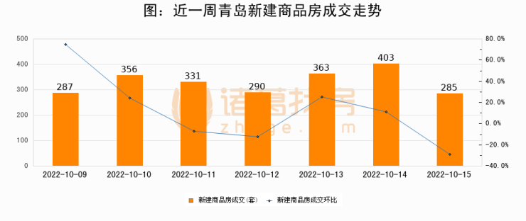 【青岛成交日报】10月15日新房成交285套、二手房19套;涨价房源163套