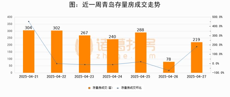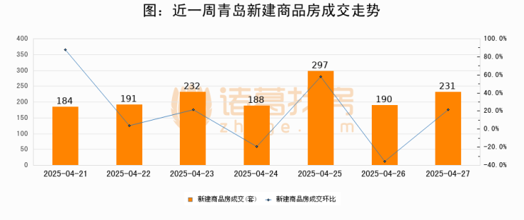 【青岛成交日报】04月27日新房成交231套、二手房219套;