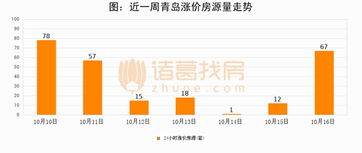 根据诸葛找房数据显示,青岛24小时涨价房源量为67套,较10月15日增加55套,环比上涨458.3%。与此同时,涨价房源占比小幅扩大,业主信心有所提升。