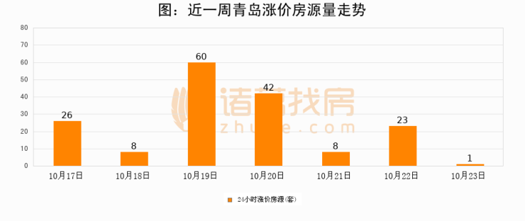 根据诸葛找房数据显示,青岛24小时涨价房源量为1套,较10月22日减少22套,环比下降95.7%。与此同时,涨价房源占比小幅回落,对于购房者来说是一个入市窗口期,购房者可抓住时机入市。
