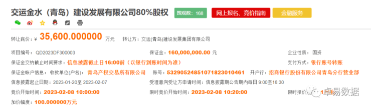 近日,交运金水(青岛)建设发展有限公司再次降价转让80%股权,转让方为交运(青岛)建设发展集团有限公司,另外20%股权持有人为金水集团,涉及万竹云峰项目。