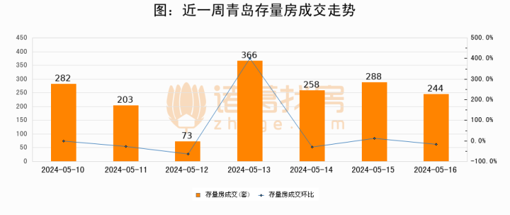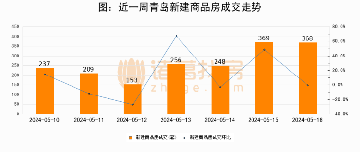 【青岛成交日报】05月16日新房成交368套、二手房244套;涨价房源43套