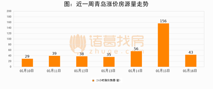 根据诸葛找房数据显示,青岛24小时涨价房源量为43套,较05月15日减少113套,环比下降72.4%。与此同时,涨价房源占比小幅回落,对于购房者来说是一个入市窗口期,购房者可抓住时机入市。