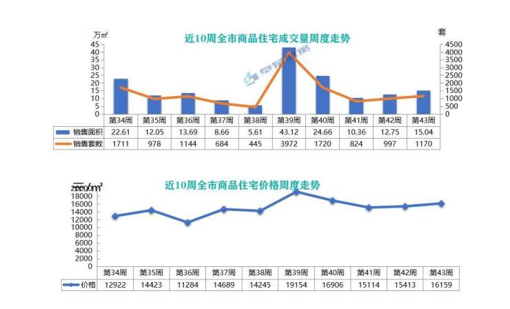 价格方面,上周青岛新建商品住宅均价为16159元/㎡,上涨746元,涨幅为4.84%。
