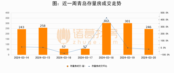 【青岛成交日报】03月20日新房成交392套、二手房246套;涨价房源44套