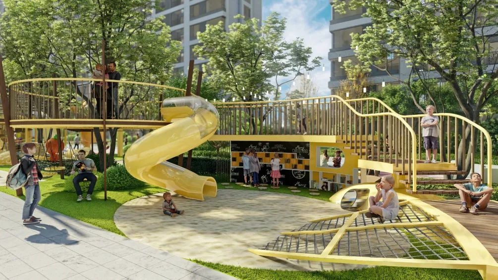 分龄童梦乐园、老人净心公园、室外会客厅等全能公园式园林,脚步声、谈笑声、嬉闹声……声声入耳皆是圆满。