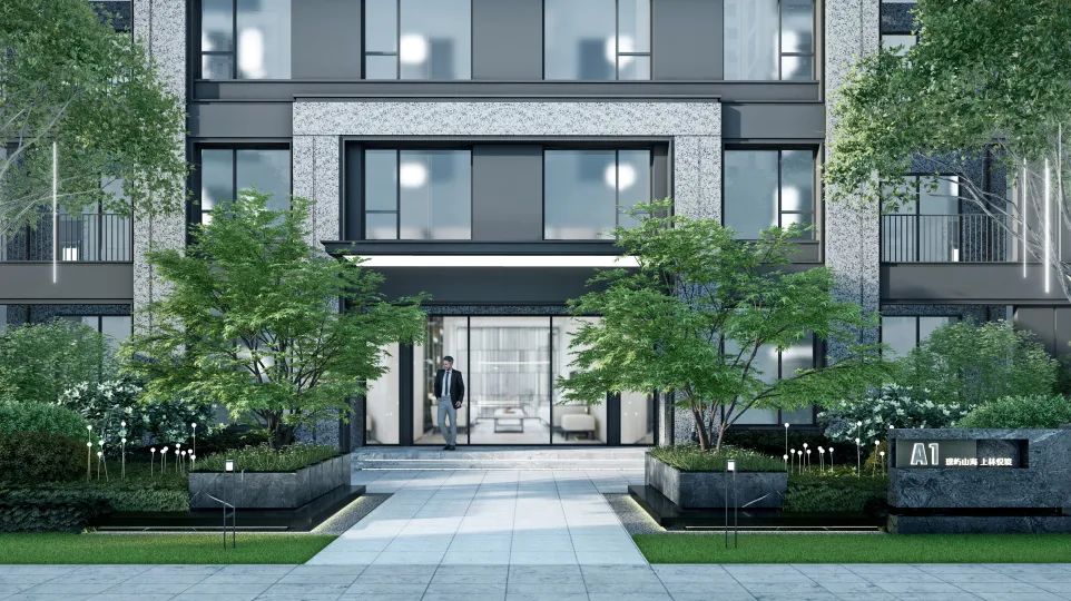 简单线条勾勒艺术空间,立足整体比例协调统一,玻璃搭配真石漆,点缀金属构件,浅色基调打造含蓄典雅的现代建筑意象。