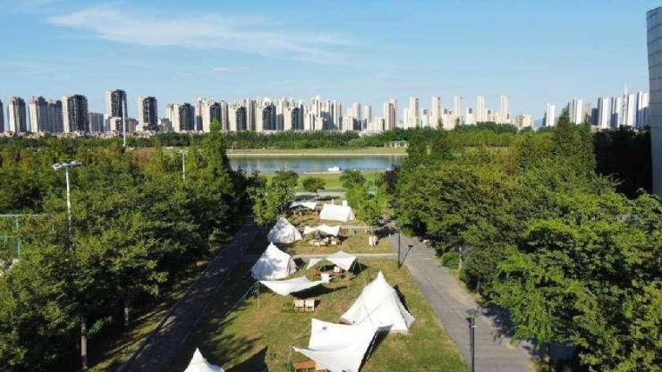 晨起河畔散步、慢跑,感受鸟鸣、微风、晨曦,交织出一幅美妙画卷。午后,林荫下、河畔草坪上,置一顶帐篷,来一场野趣露营,放飞纸鸢,看孩子尽情撒欢;待暮色四垂,一场篝火、烧烤派对即将开演,有趣的灵魂在此自然相逢;入夜,与爱人相拥、漫赏星空,睡进帐篷,在微风与清波的私语里安然入眠。