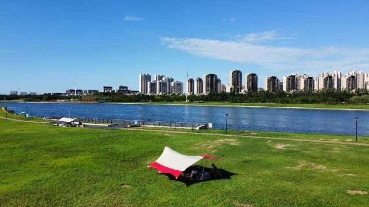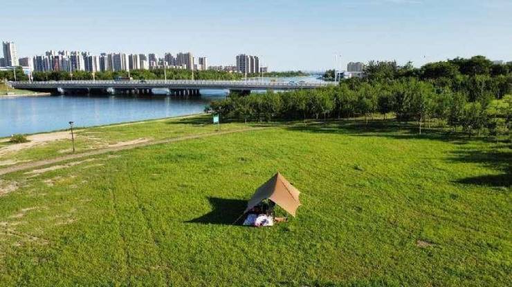 与家人、朋友相约,在河畔大草坪上搭上帐篷,来一场露营、野炊,尽情拥抱春日美好,睡进诗意自然,闲享野趣时光。