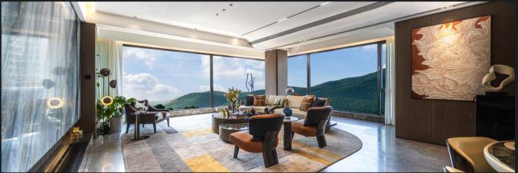 室内设计则由唐忠汉大师负责,他以“大地风格”著称,将室内空间与自然景观完美融合。和樾府的室内空间采用了造价昂贵的木饰面,营造出质朴温润的氛围。同时,精心选定的高端岩板,让室内空间既有自然的美感,又不失现代艺术的质感。