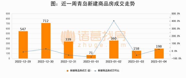 【青岛成交日报】01月04日新房成交198套、二手房215套;涨价房源59套