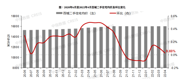 中指研究院公布的数据显示,2022年4月,全国100个城市新建住宅平均价格为16193元/平方米,环比上涨0.02%,涨幅较上月收窄0.01个百分点;同比上涨1.51%,涨幅较上月收窄0.21个百分点。