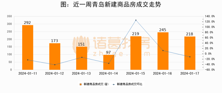 【青岛成交日报】01月17日新房成交218套、二手房222套;涨价房源79套