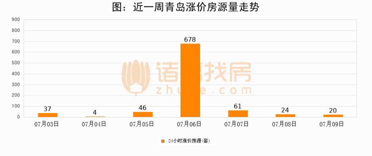 根据诸葛找房数据显示,青岛24小时涨价房源量为20套,较07月08日减少4套,环比下降16.7%。与此同时,涨价房源占比小幅回落,对于购房者来说是一个入市窗口期,购房者可抓住时机入市。