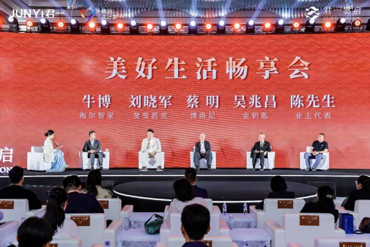 在发布会“美好生活畅享会”圆桌论坛环节,君一雲启业主与来自海尔智慧家庭、斐雪派克、博洛尼、金钥匙国际联盟生态方的嘉宾,围绕“高阶人居的美好生活”展开对话,共同勾勒出君一雲启无界生活的理想图景。