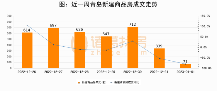 【青岛成交日报】01月01日新房成交71套、二手房4套;涨价房源168套