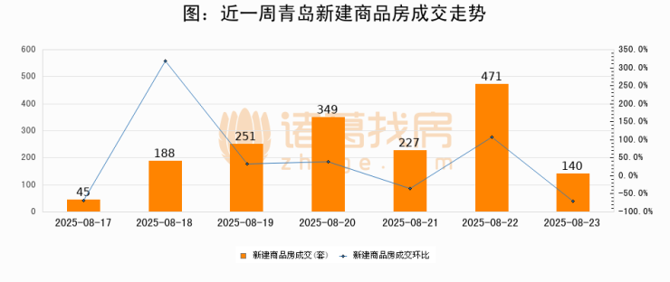 【青岛成交日报】08月23日新房成交140套、二手房87套;
