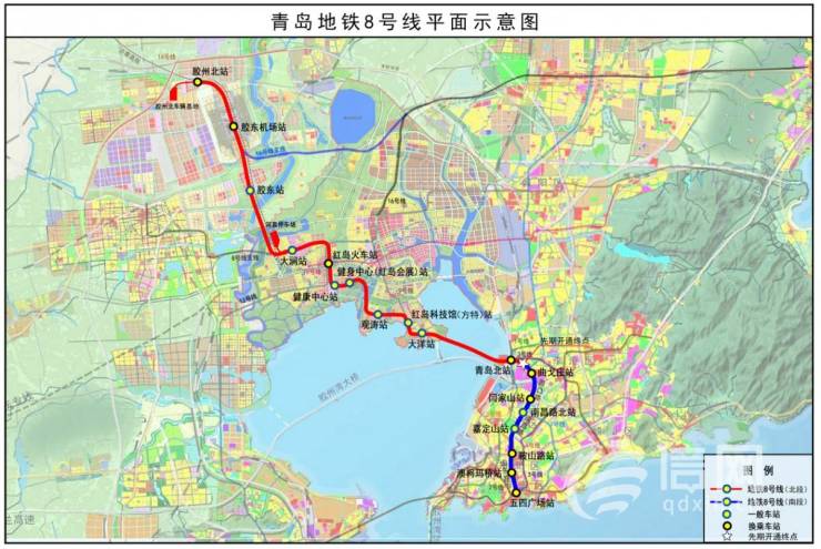 青岛地铁8号线平面示意图。 (来源:青岛地铁)