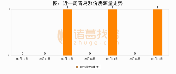 根据诸葛找房数据显示,青岛24小时涨价房源量为1套,较02月15日增加1套,环比上涨0%。与此同时,涨价房源占比小幅扩大,业主信心有所提升。