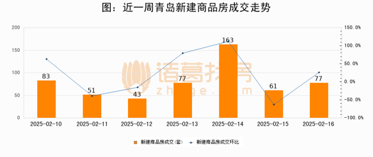 【青岛成交日报】02月16日新房成交77套、二手房50套;涨价房源1套