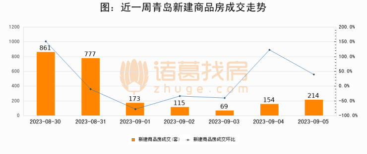 【青岛成交日报】09月05日新房成交214套、二手房198套;涨价房源62套