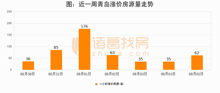 根据诸葛找房数据显示,青岛24小时涨价房源量为62套,较09月04日增加27套,环比上涨77.1%。与此同时,涨价房源占比小幅扩大,业主信心有所提升。
