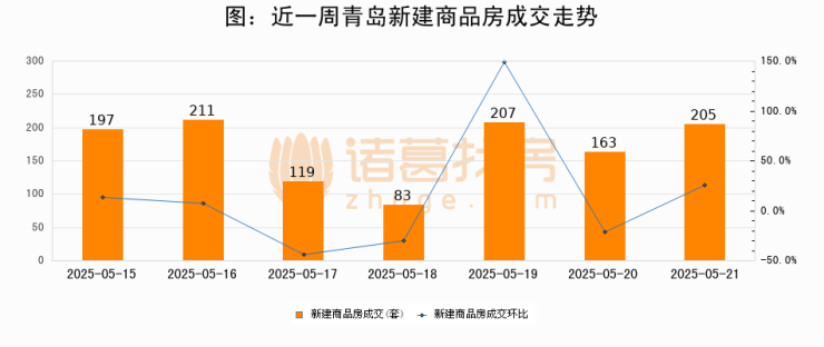 【青岛成交日报】05月21日新房成交205套、二手房237套;