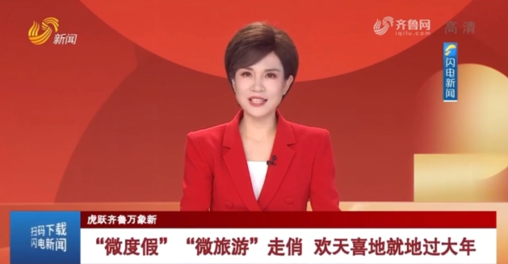 2月4日山东广播电视台新闻频道《闪电直播间》以“微度假微旅游走俏,欢天喜地就地过大年”为主题报道阿朵小镇式特色微度假旅游,丰富市民春节假期生活。